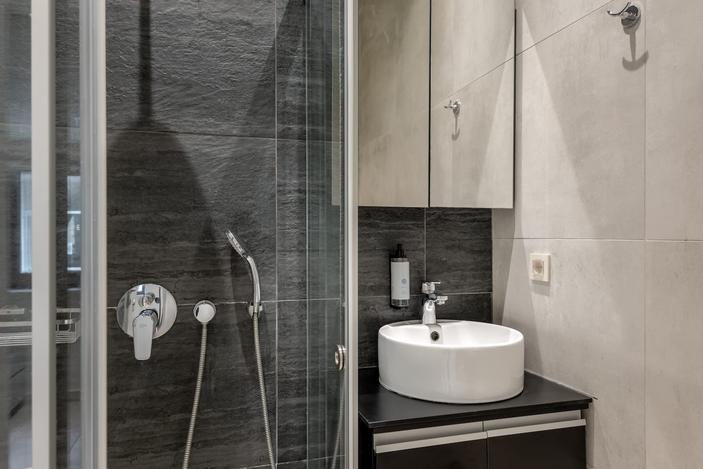 The modern bathroom, complete with a refreshing walk-in shower and hairdryer, is ideal for unwinding after a day of exploration.