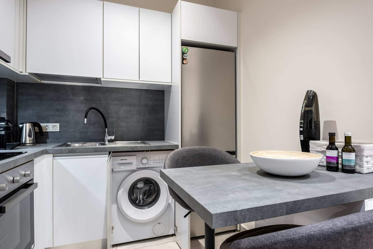 Step inside this modern, stylish ground-floor apartment, which has been expertly designed for an unforgettable stay. Fully equipped and insulated with soundproof walls, this space allows you to feel instantly at home while enjoying a quiet urban environment.